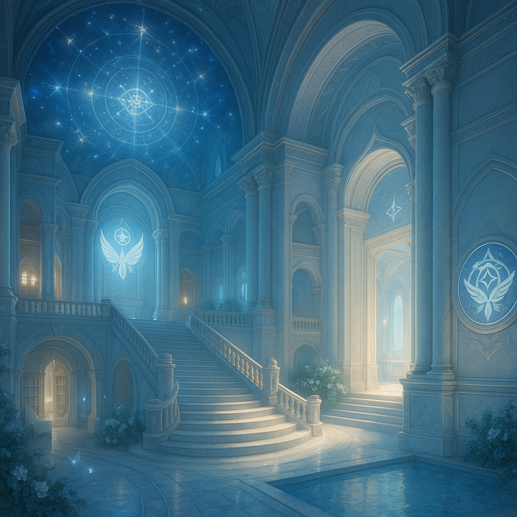 | 🌟 天空層(最上階) | 星図の間(Hall of Celestial Codes) | 評議会/未来の設計/契約の再起動場所。天井は宇宙図で動き、真名が点灯。 |